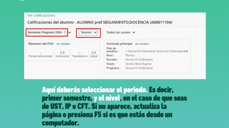 Si al momento de realizar el proceso no se visualiza tu periodo, deberás actualizar la página en tu teléfono móvil o presionar F5 si es que estás haciéndolo desde un computador.