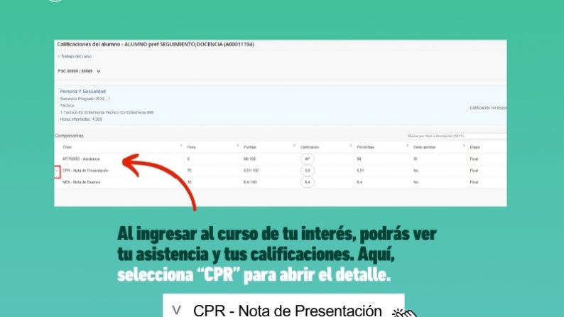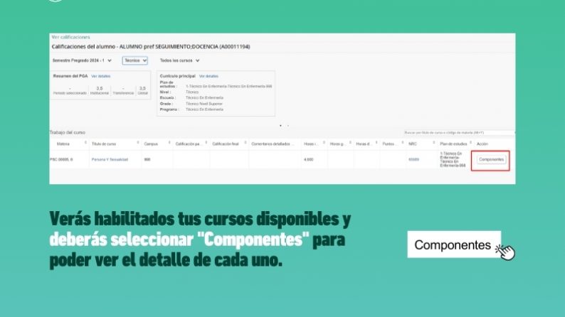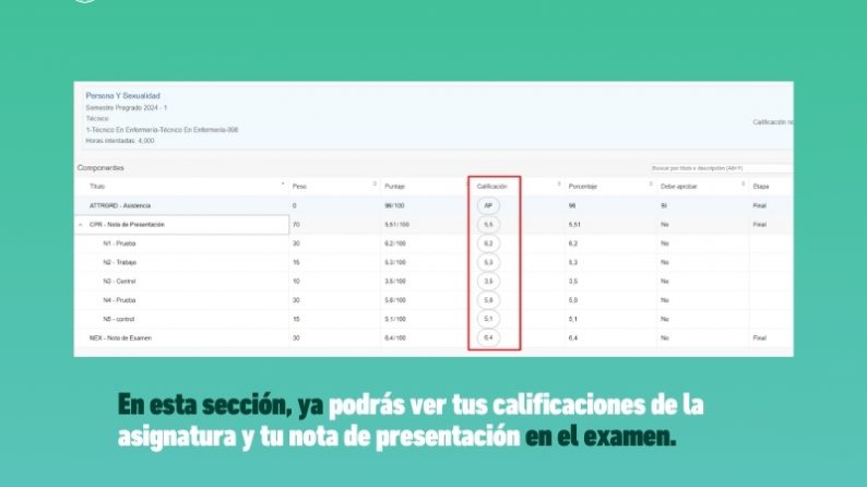 Para facilitar el acceso a tu información, creamos una tarjeta denominada “Visualiza tus Calificaciones”, que te llevará directamente a las asignaturas para revisar las notas parciales/finales, además de tu asistencia final.