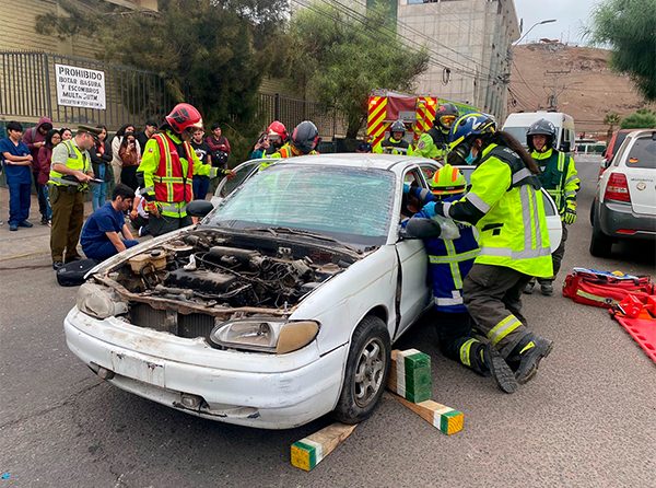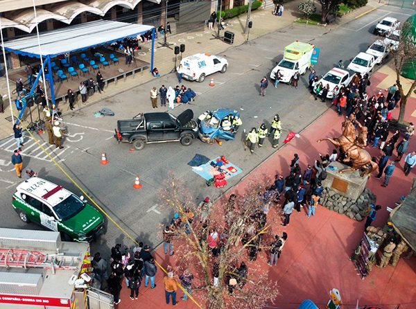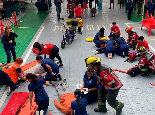 Masiva participación a nivel nacional en simulacro a escala real de colisiones vehiculares con la participación de estudiantes y organizaciones externas ejecutando primeros auxilios y rescate a víctimas simuladas.