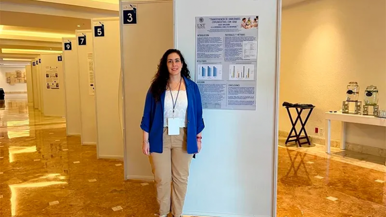 Pia Novoa, presentó en categoría de Poster la “Transferencia de habilidades comunicativas con SBAR, desde simulación a la experiencia clínica en enfermería” donde se evalúa la transferencia del aprendizaje del uso de SBAR a la experiencia clínica luego de ser entrenada con simulación clínica en estudiantes de enfermería de la Universidad Santo Tomás. Como resultado, se pudo validar la progresión en la adquisición de las habilidades de comunicación desde los cursos inferiores a superiores. Las otras autoras del trabajo fueron: Cynthia Vega, María Jaramillo Larson, Claudia Palma Guerra, Valeria Recabarren, y Paula Mendez, docente de Escuela de Enfermería.