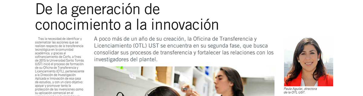 En el especial del Mercurio, sobre Transferencia Tecnológica, Emprendimiento e Innovación, fue entrevista Paula Aguilar (Directora OTL UST). Para revisar la noticia pincha aquí.